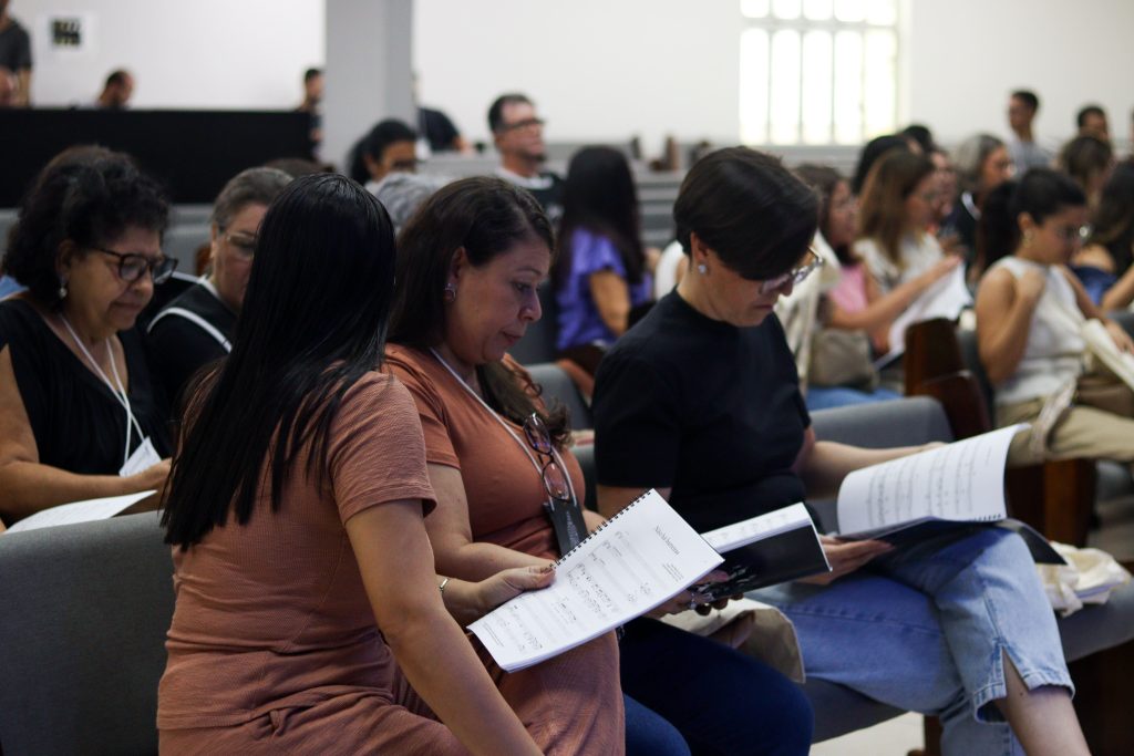 Um dos destaques do congresso foi a participação do Madrigal AMBMG sob regência da MM. Alzira Araújo, além dos momentos coletivos que envolveram grande coro e Teatro, proporcionando experiências marcantes tanto nas manhãs quanto nas noites do evento.